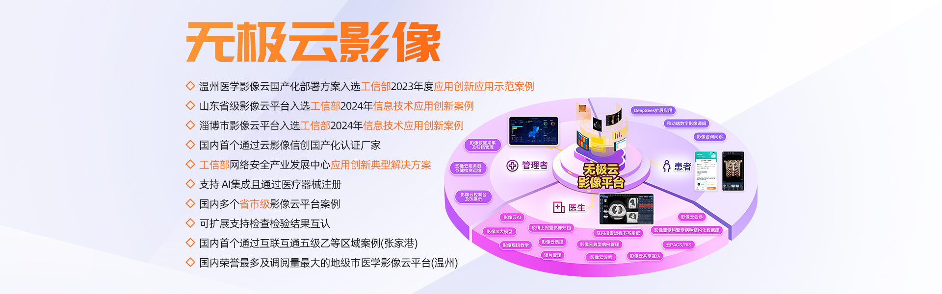 擁有多家年門(mén)診量400多萬(wàn)以上人次的大型三甲醫(yī)院全院PACS及云影像案例,多個(gè)省市規(guī)模醫(yī)學(xué)影像云平臺(tái)案例,承建的溫州市醫(yī)學(xué)影像云平臺(tái)榮獲浙江省最多跑一次改革十佳案例、省領(lǐng)跑者定位題詞、全國(guó)惠民便民優(yōu)秀案例、基于影像云AI分析試點(diǎn)單位等榮譽(yù)。